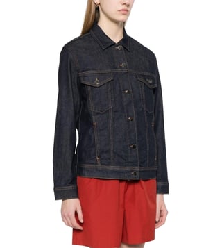 The Emporio Armani Blue Jacket is a masterpiece of modern elegance, seamlessly blending sophistication with a touch of urban flair. Crafted from the finest materials, its deep azure hue captures the essence of twilight skies, exuding an aura of mystery and allure. The tailored fit accentuates the silhouette, while subtle stitching details add a layer of refinement. With sleek lapels and discreet pockets, this jacket is the epitome of contemporary style, perfect for those who command attention with effortless grace.
