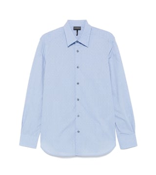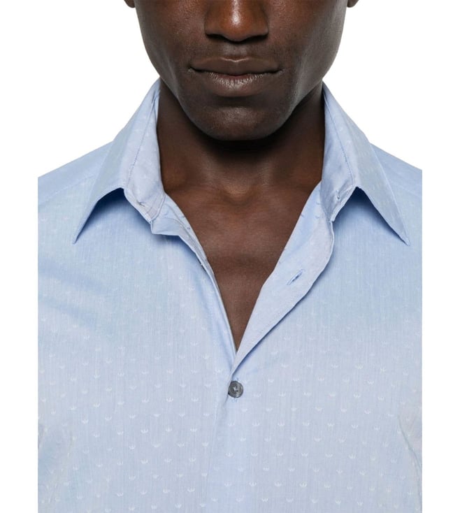 Emporio Armani Blue Jacquard Logo Cotton Shirt
