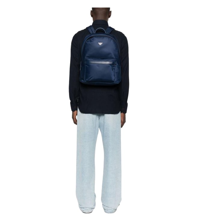 Blue Logo Backpack, zip closure, 1 compartment, outside zip pocket, solid, front logo, top handle with adjustable backpack straps. Polyamide 100% With its timeless design and practical features, this bag is a must-have accessory for the modern woman on-the-go.