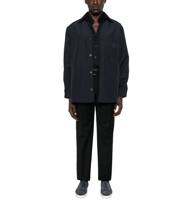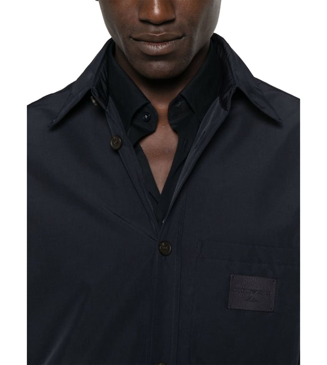 Elevate your style with the Emporio Armani Navy Logo Patch Regular Fit shirt. Front button fastening chest patch pocket two side welt pockets buttoned cuffs this piece fits true to size. recommend you get your regular size model is 1,84m / 6ft 1in wearing size m. Products purchased from Darveys are supported exclusively by the warranty/exchange policies of Darveys and its partner boutiques. Brand owners and their channel partners are not responsible for exchange/warranty services for items purchased through Darveys.