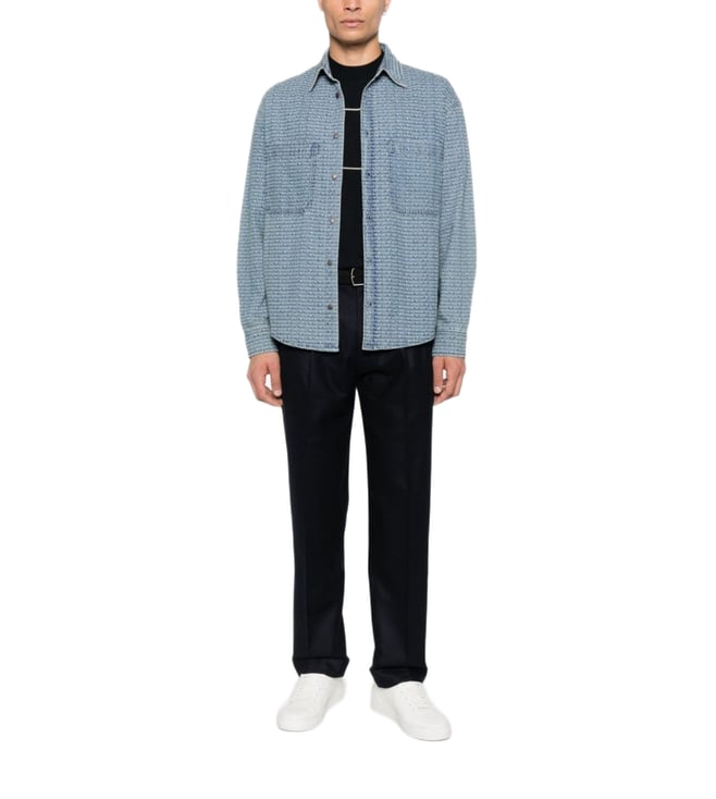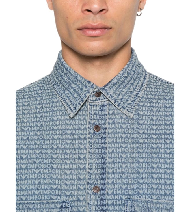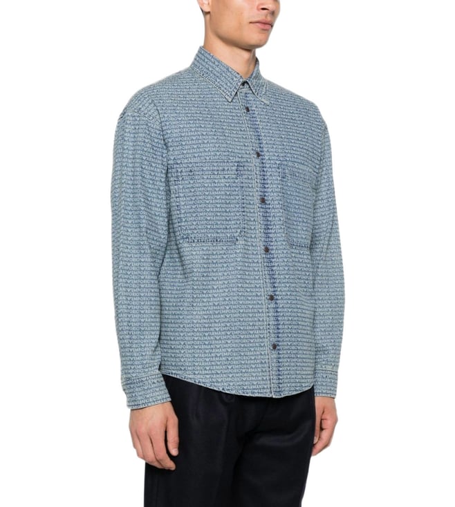 Logo print, long sleeves, button fastening, chest pockets, collared neck.