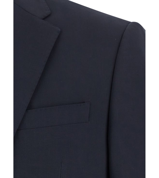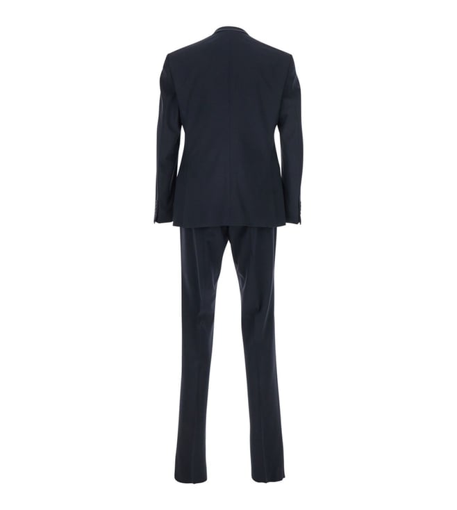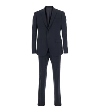 Falling lapel, single-breasted fastening with two buttons at the front, pocket on the chest, two flap pockets on the front, three piped pockets inside, one with button fastening, cuffs with four buttons, two side slits at the back, slim-fit trousers, waistband with belt loops, waistband extension, hook and button fastening, concealed zip at the front, narrow coin pocket on the waistband on the right front, side wing pockets, two piped pockets with button fastening at the back, unshortened leg ends.