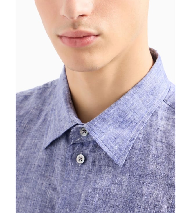 Elevate your style with the Emporio Armani Blue Regular Fit shirt. Straightpoint collar long sleeves buttoned cuffs front button fastening curved hem this piece fits true to size. recommend you get your regular size model is 1,84m / 6ft 1in wearing size m. Products purchased from Darveys are supported exclusively by the warranty/exchange policies of Darveys and its partner boutiques. Brand owners and their channel partners are not responsible for exchange/warranty services for items purchased through Darveys.