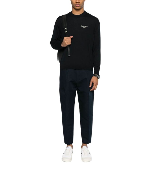 Elevate your style with the Emporio Armani Black Regular Fit Sweater. Logo long sleeves crewneck pullover composition: wool this piece fits true to size. recommend you get your regular size model is 1,84m / 6ft 1in wearing size m. Products purchased from Darveys are supported exclusively by the warranty/exchange policies of Darveys and its partner boutiques. Brand owners and their channel partners are not responsible for exchange/warranty services for items purchased through Darveys.