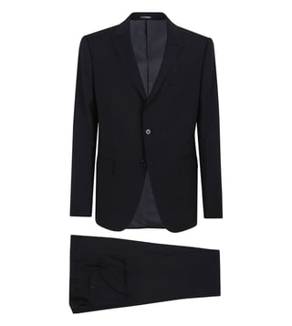 Elevate your style with the Emporio Armani Black Regular Fit Single Breasted Suit. Black front button fastening two front flap pockets notched lapels long sleeves this piece fits true to size. recommend you get your regular size model is 1,84m / 6ft 1in wearing size 48 (it).