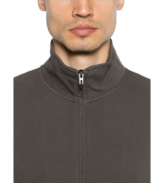 Elevate your style with the Emporio Armani Brown Zipped Regular Fit Sweatshirt. Front zip fastening slip pockets to the sides high neck ribbed cuffs and hem this piece fits true to size. recommend you get your regular size model is 1,84m / 6ft 1in wearing size m.