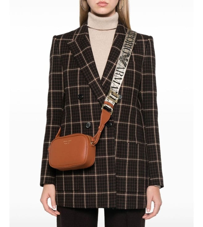 Emporio Armani Brown Embossed Logo Cross Body Bag