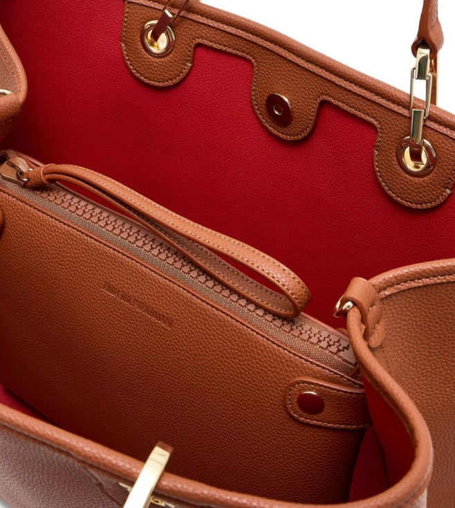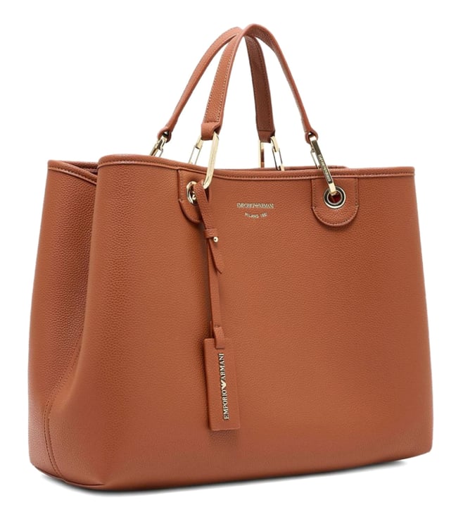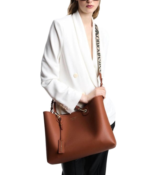 Expand the collection of your accessories in a trendy way with this bag from Emporio Armani. Brownmagnetic fasteningtwo top handlesadjustable detachable shoulder strapgold-tone logo letteringouter: polyester 100 percent, polyurethane 100 percent