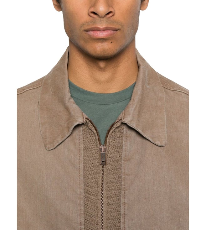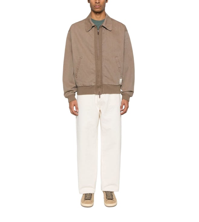 Elevate your style with the Emporio Armani Taupe Regular Fit Jacket. Front zip fastening two side welt pockets logo patch to the side classic collar this piece fits true to size. recommend you get your regular size model is 1,84m / 6ft 1in wearing size 48 (it).