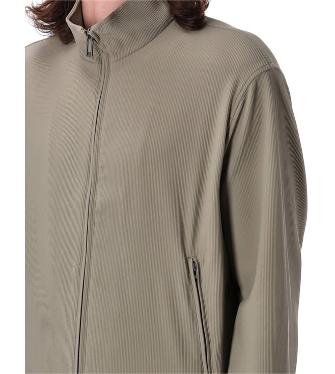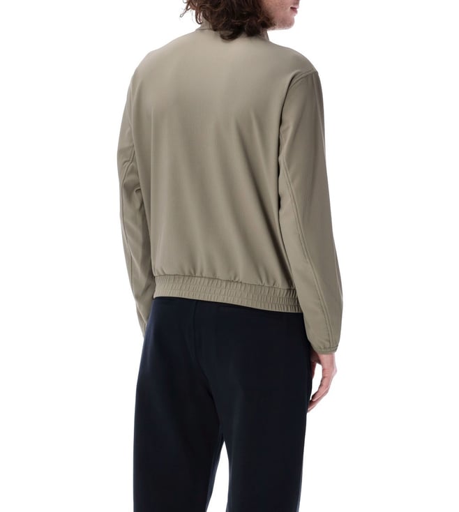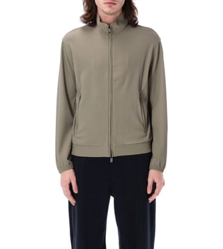 Elevate your style with the Emporio Armani Olive Blouson Jacket. Standup collar. Fullzip fastening. Weave. Long sleeves. Side zip pockets. Stretch cuffs and hem.