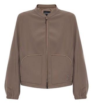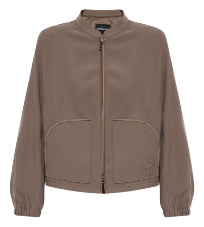 Emporio Armani Brown Zipped Blouson Flared Fit Jacket