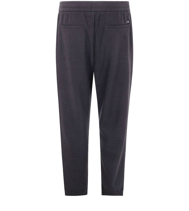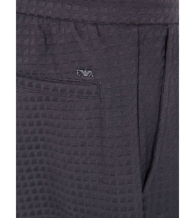 Elevate your style with the Emporio Armani Charcoal Relaxed Fit trackpants. Dark grey textured weave elasticated waistband cuffed hems two rear pockets logo patch Crafted for durability and comfort.