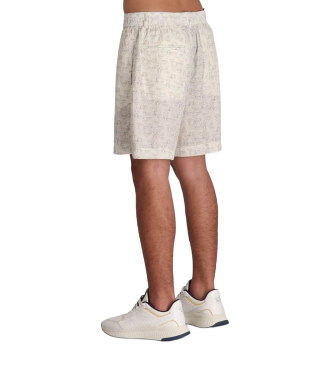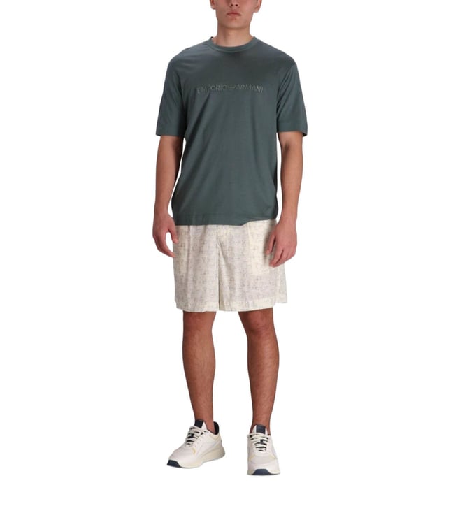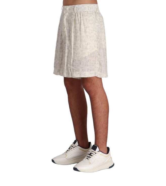Emporio Armani Cream Allover Logo Regular Fit Bermuda Shorts