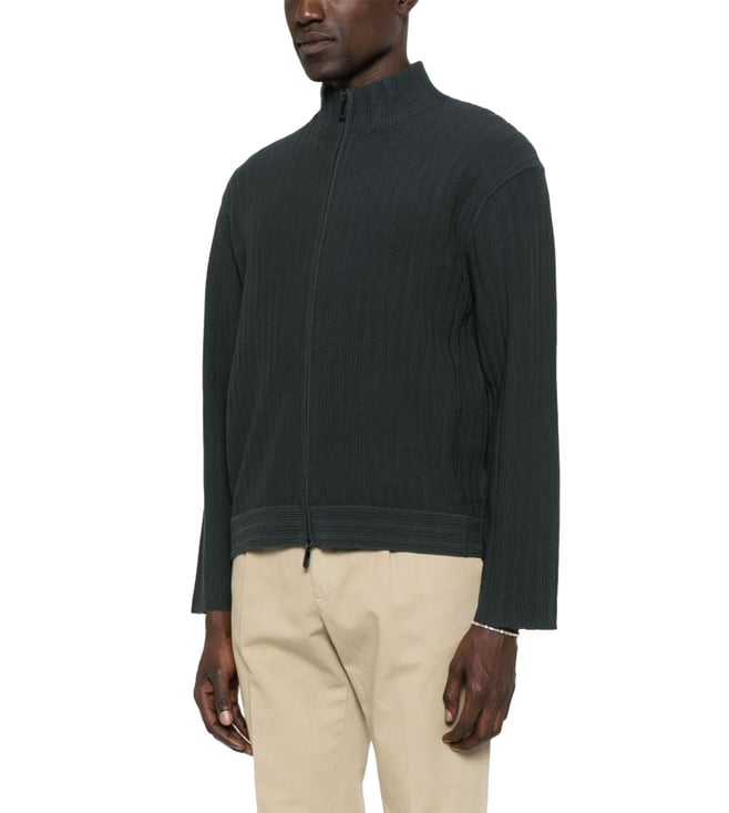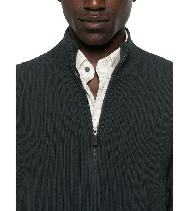 Emporio Armani Dark Grey Full Zip Textured Sweater