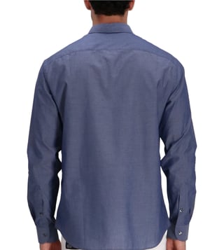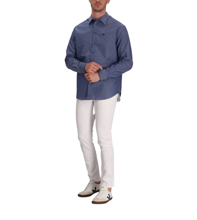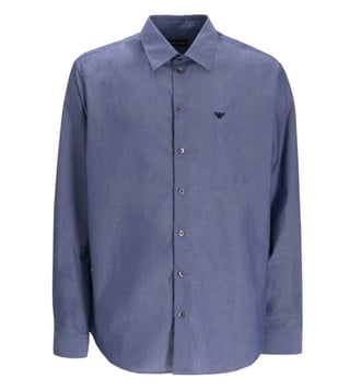 Elevate your style with the Emporio Armani Blue shirt. Blue long sleeves button fastening classic collar signature eagle logo.