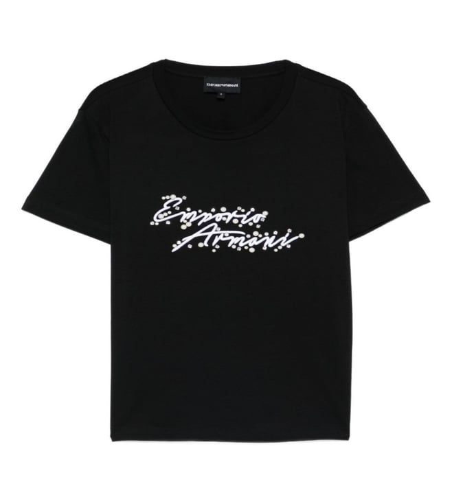 Black Round Neck Graphic Logo T-shirt