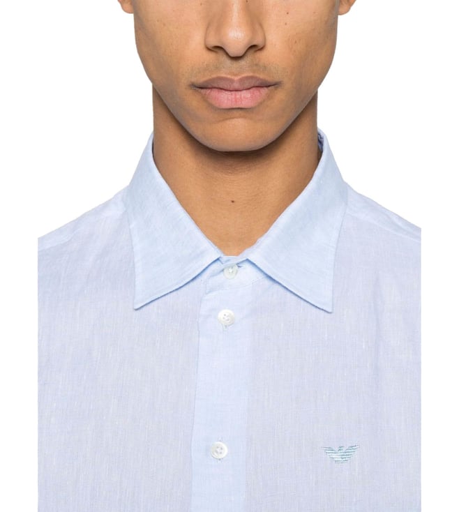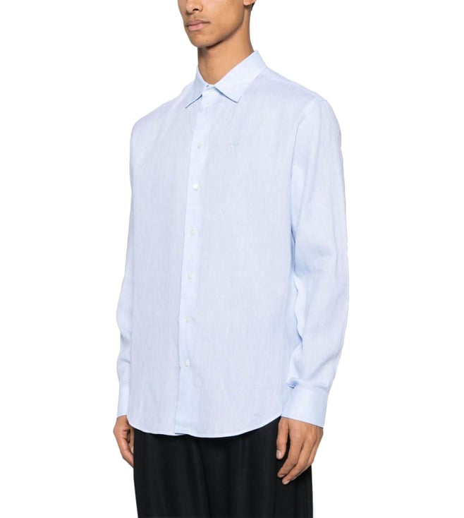 Elevate your style with the Emporio Armani Light Blue Shirt. Collar, long sleeves, front button. Products purchased from Darveys are supported exclusively by the warranty/exchange policies of Darveys and its partner boutiques. Brand owners and their channel partners are not responsible for exchange/warranty services for items purchased through Darveys.