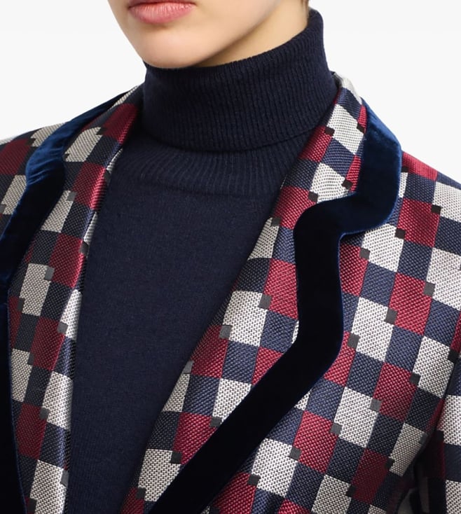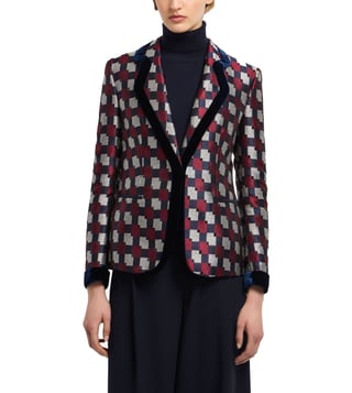 Elevate your style with this vibrant multi-color checked blazer, designed for the modern woman. Featuring long sleeves and a sophisticated lapel collar, this piece is crafted from 100% polyester for a sleek finish. Perfect for making a bold statement, it effortlessly combines classic charm with contemporary flair. Products purchased from Darveys are supported exclusively by the warranty/exchange policies of Darveys and its partner boutiques. Brand owners and their channel partners are not responsible for exchange/warranty services for items purchased through Darveys.