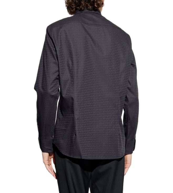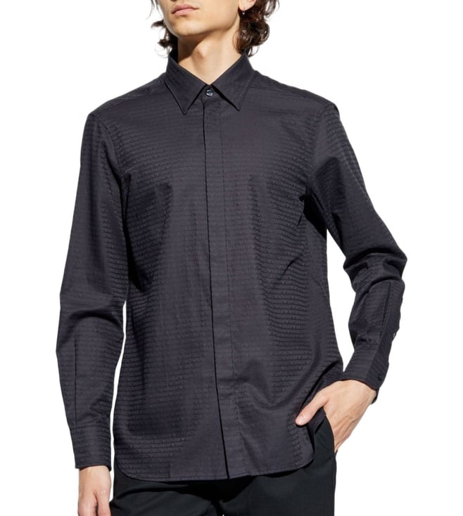 Elevate your style with the Emporio Armani Black Design shirt. Blue front button fastening long sleeves.