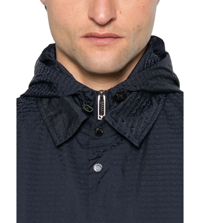 Emporio Armani Navy Blue Nylon Hooded Jacket