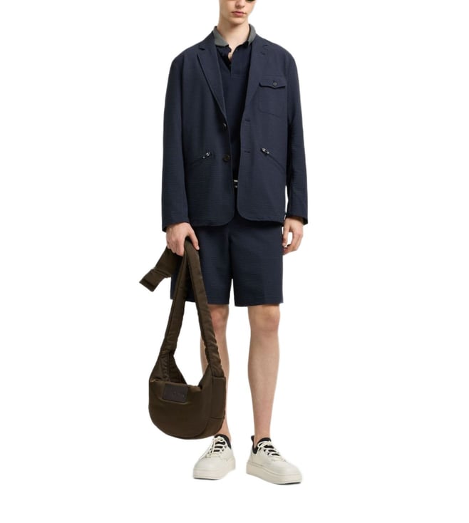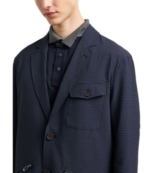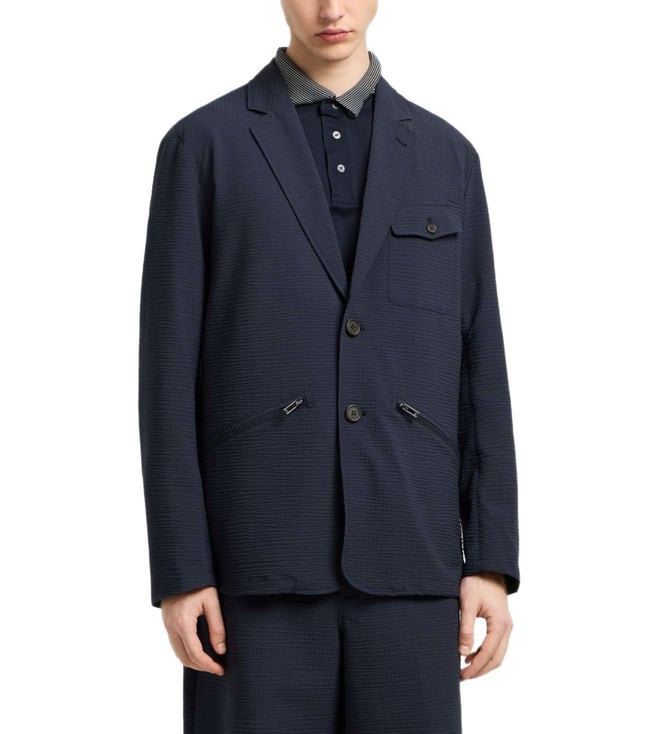 Navy blue textured weave two button fastening patch pocket zip detail pockets notched lapel. Products purchased from Darveys are supported exclusively by the warranty/exchange policies of Darveys and its partner boutiques. Brand owners and their channel partners are not responsible for exchange/warranty services for items purchased through Darveys.