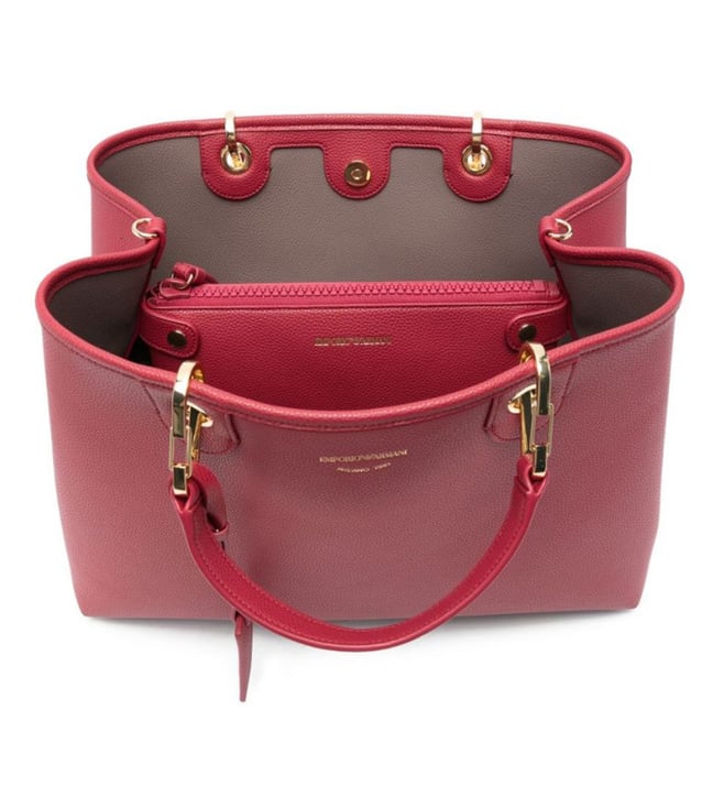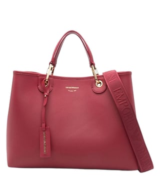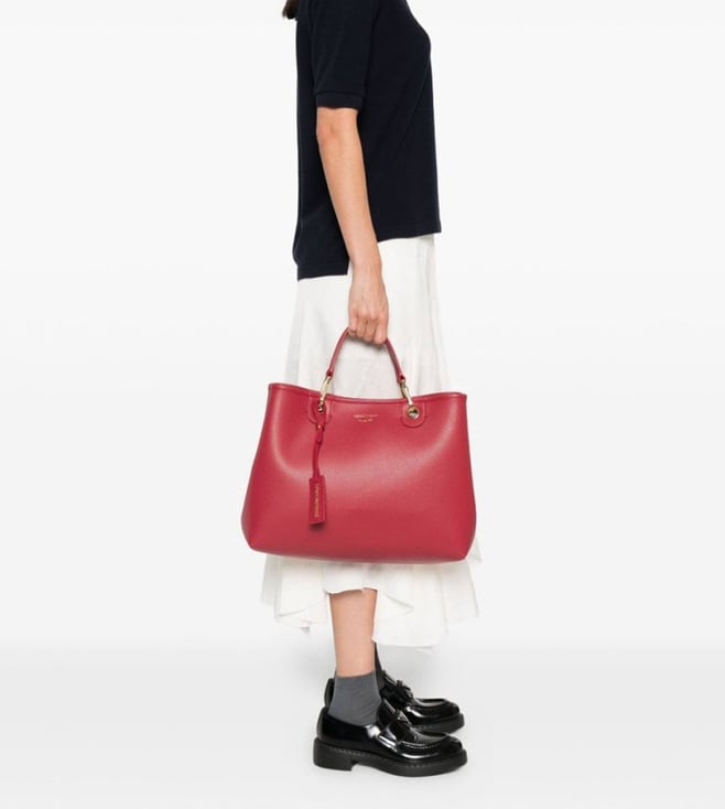 Red MyEA Medium Tote, magnetic closure, 1 compartment, removable pouch, front logo, removable dual carry handles with removable and adjustable shoulder strap.100% polyurethane With its timeless design and practical features, this bag is a must-have accessory for the modern woman on-the-go.