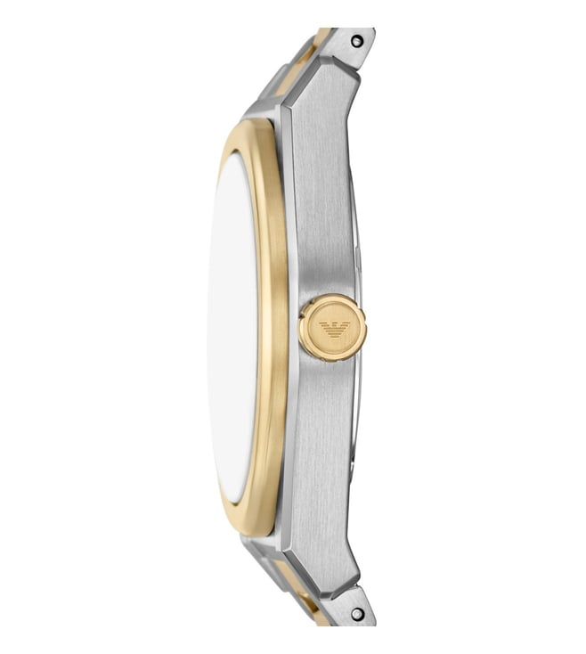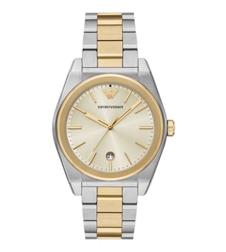 Elevate your style with the Emporio Armani Quartz Men 41mm AR11716 watch. This sleek timepiece boasts a sophisticated cream dial with CD finishing, housed in a striking two-tone stainless steel case and bracelet. With a reliable Japanese movement and a convenient date window at 6 oclock, this watch is the perfect accessory for any occasion. Make a statement with this elegant and versatile timepiece that seamlessly combines fashion and functionality.
