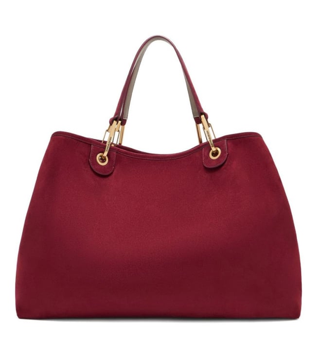 Red myea xl tote, snap closure, 1 compartment, removable zip pouch, textured, front logo, dual carry handles.100% Polyester Products purchased from Darveys are supported exclusively by the warranty/exchange policies of Darveys and its partner boutiques. Brand owners and their channel partners are not responsible for exchange/warranty services for items purchased through Darveys.