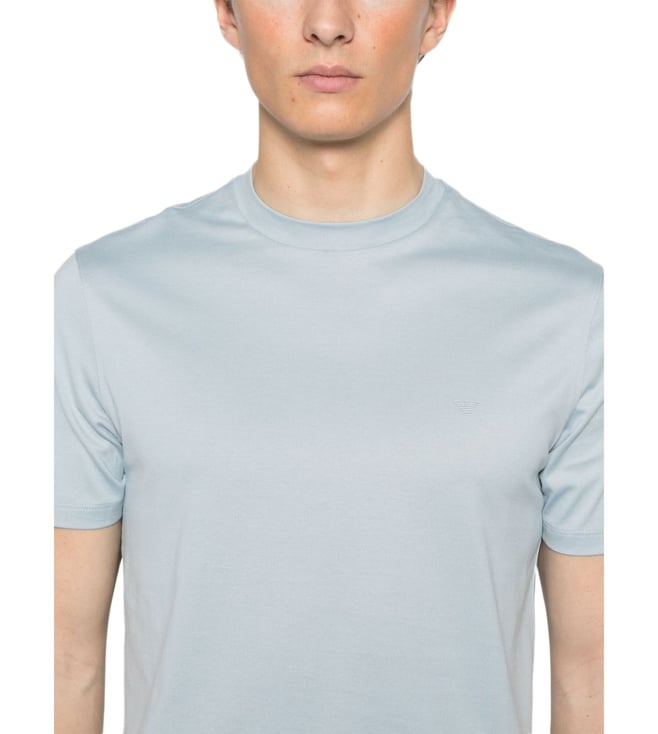 Emporio Armani Sky Blue Crewneck Logo Print T-Shirt