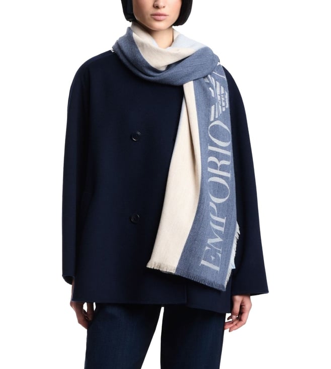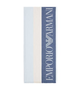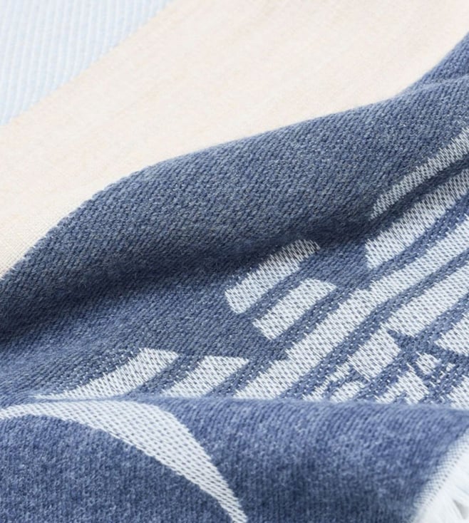 Scarf featuring light blue three-stripe pattern frayed edges logo detailing rectangular shape.. Products purchased from Darveys are supported exclusively by the warranty/exchange policies of Darveys and its partner boutiques. Brand owners and their channel partners are not responsible for exchange/warranty services for items purchased through Darveys.