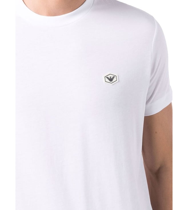 Elevate your style with the Emporio Armani White Regular Fit t-shirt. Brightwhite cotton logopatch shortsleeved t-shirt from emporio armani featuring round neck, short sleeves, logo print to the front and straight hem. This piece fits true to size. recommend you get your regular size model is 1,84m / 6ft 1in wearing size m. Products purchased from Darveys are supported exclusively by the warranty/exchange policies of Darveys and its partner boutiques. Brand owners and their channel partners are not responsible for exchange/warranty services for items purchased through Darveys.