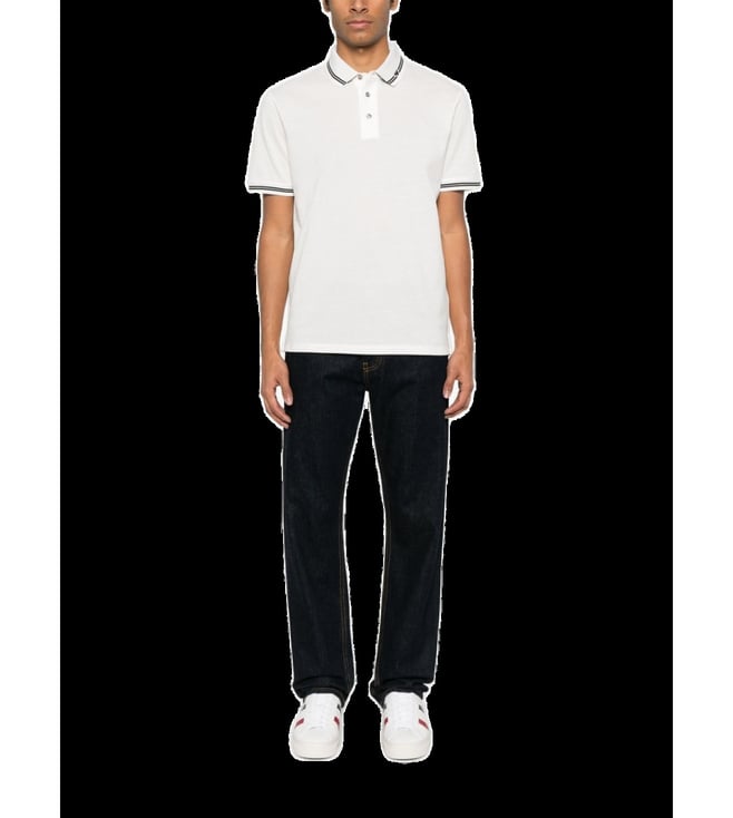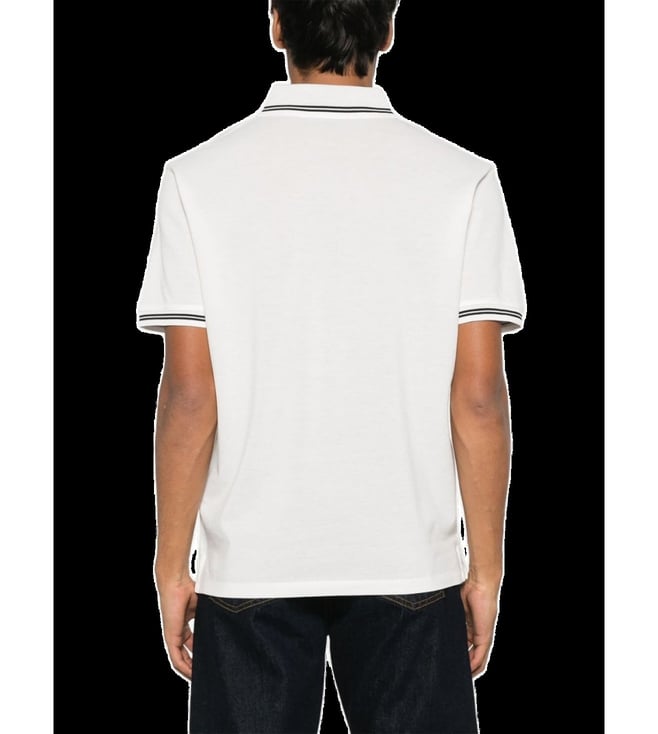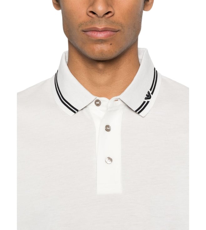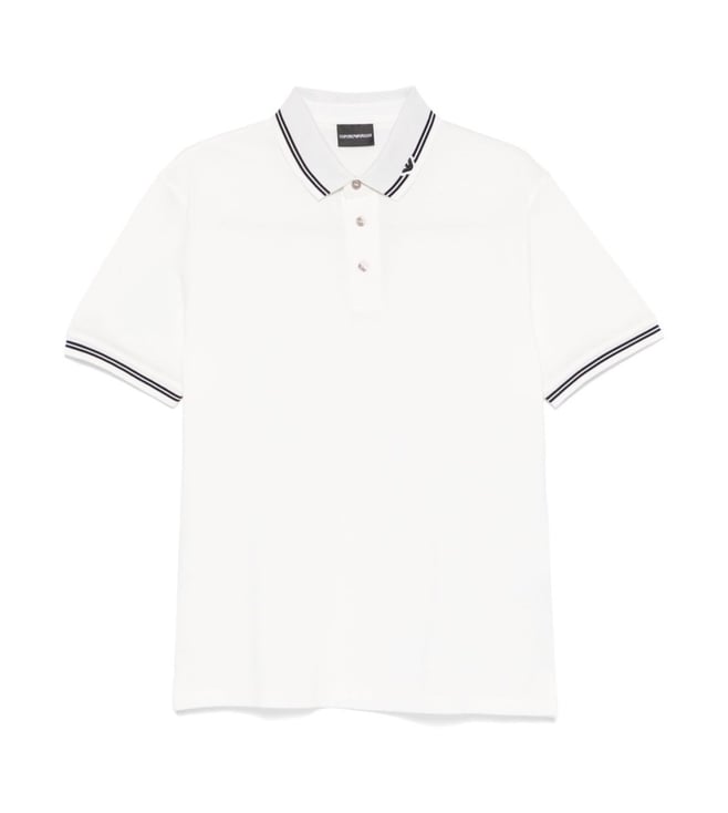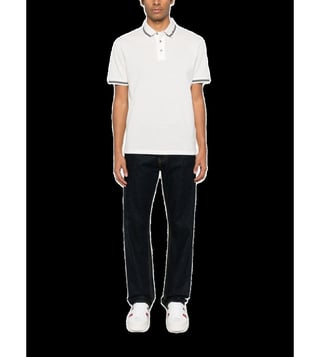 Elevate your style with the Emporio Armani White Regular Fit polo t-shirt. Front button placket short side slits short sleeves this piece fits true to size. recommend you get your regular size model is 1,84m / 6ft 1in wearing size m. Products purchased from Darveys are supported exclusively by the warranty/exchange policies of Darveys and its partner boutiques. Brand owners and their channel partners are not responsible for exchange/warranty services for items purchased through Darveys.