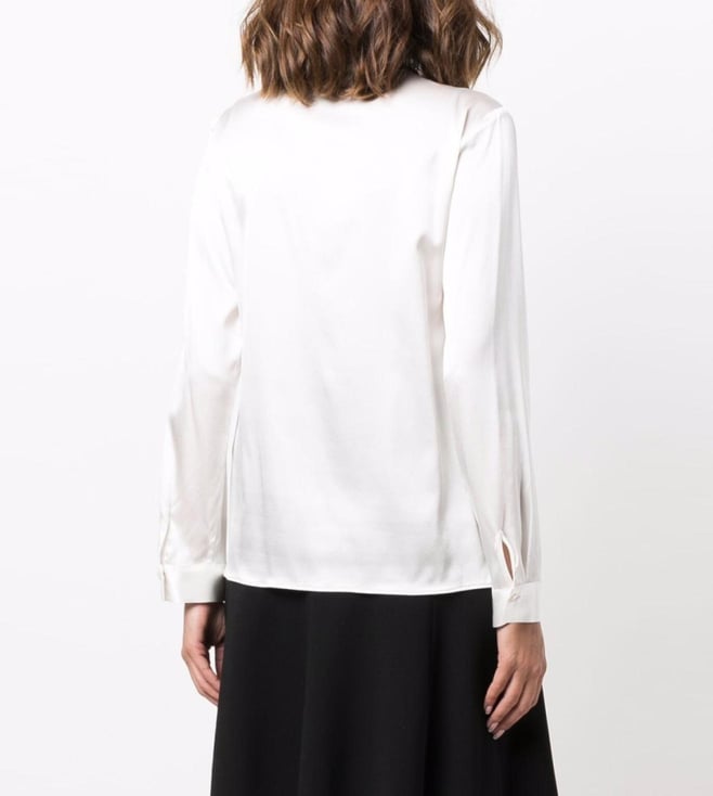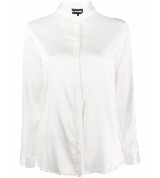 Elevate your wardrobe with this exquisite white casual shirt, a harmonious blend of elegance and comfort. Crafted from a luxurious 90% silk and 10% elastane fabric, it offers a soft, fluid drape that moves with you. The solid pattern exudes timeless sophistication, while the long sleeves and classic shirt collar add a touch of refinement. Designed for the modern woman, this shirt features a seamless closure, ensuring a sleek silhouette. Perfect for any occasion, it embodies effortless chic.
