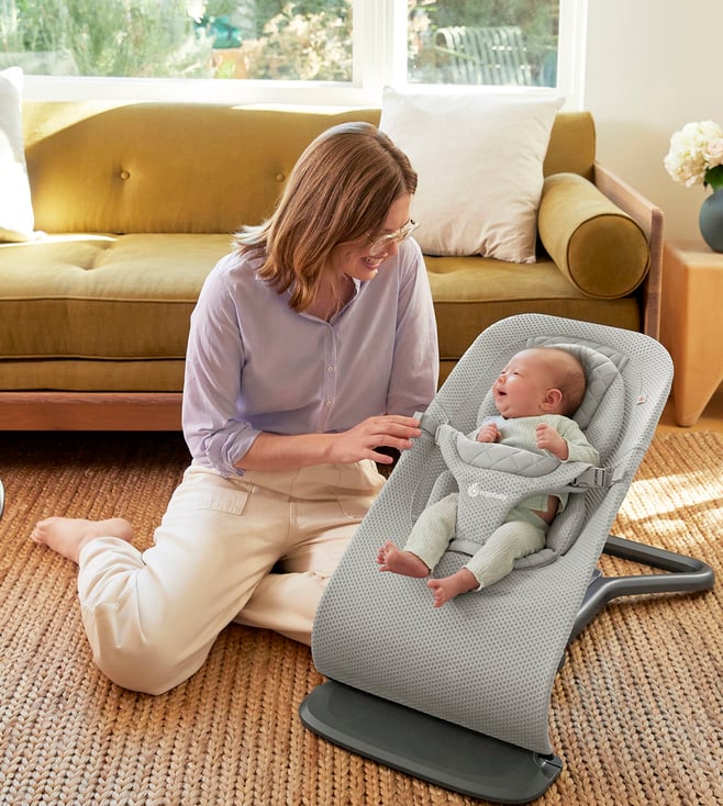 The Ergobaby 3-in-1 Evolve bouncer grows with the baby from a newborn lounger, to infant bouncer, to a toddler seat. Starting from day one, your baby will experience comfort from head to hips thanks to the ergonomic newborn insert developed with guidance from a pediatric orthopedist. It's easy to adjust and fold along with its natural rocking feature and breathable mesh fabric for maximum airflow and cooling comfort.