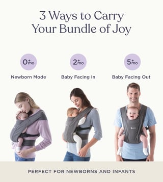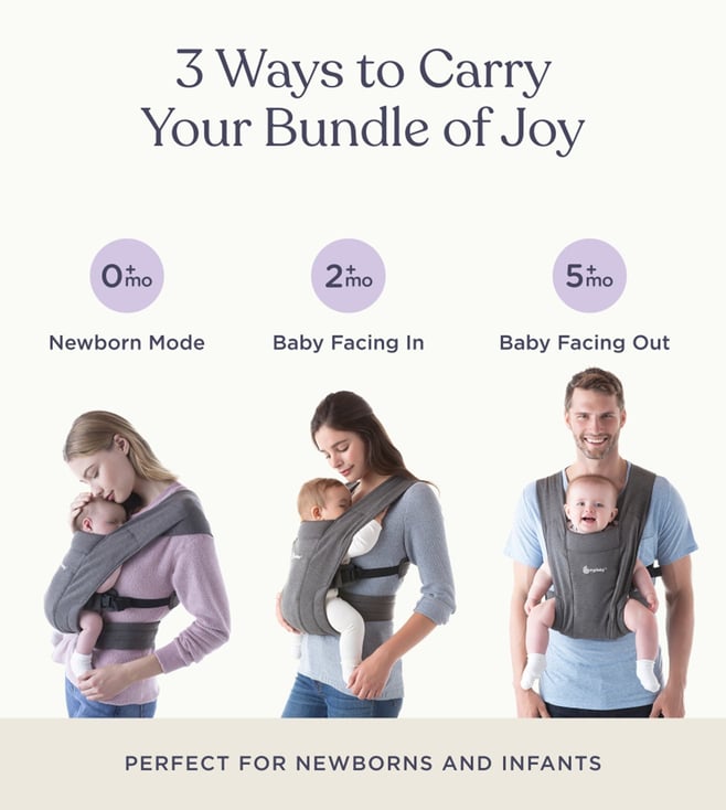 The Ergobaby Embrace is a soft and cozy newborn carrier and is the sweetest way to bond, stay close, and connect with your little one. Designed with the softness of a wrap and the structured support of a carrier. No complicated wrapping or tying. Keep your baby close as they grow with a simple adjustable waist belt. Easy to carry your baby in newborn mode, baby facing in mode, and baby facing out mode. Spreadable cross shoulder straps and a supportive waist belt provide a comfortable fit. Slim and compact easily rolls up to store in a diaper bag for quick on the go transport.