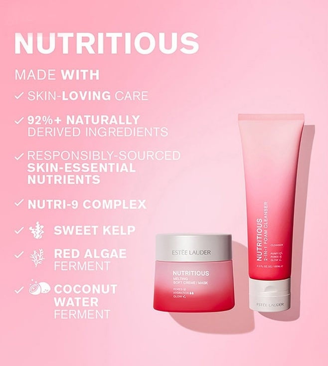 Show your skin some love with peak performance skincare from Nutritious. If your skin is grumpy, dull and irritable, this collection is what you need. Ingeniously calibrated, nutrient-rich formulas feature naturally derived ingredients. Skincare that will help skin flourish and flaunt its natural vibrancy. It's as simple as that. Melting Soft Creme/Mask melts into skin. Comfortable, cushy, pillowy feel. Quenching, soothing hydration. Skin thrives with now-awakened vitality. Sweet kelp to help fight oiliness and minimize the appearance of pores and reduce visible redness.