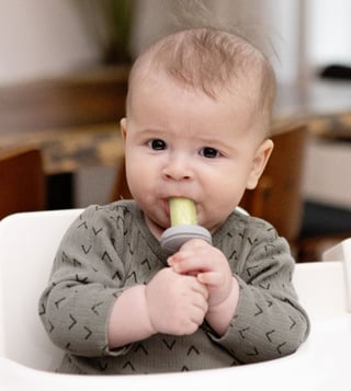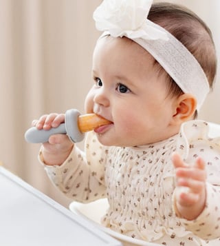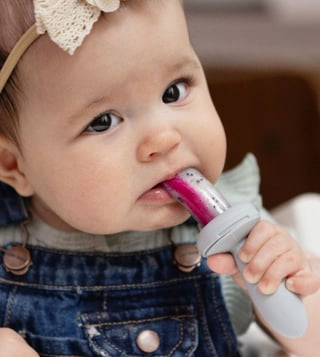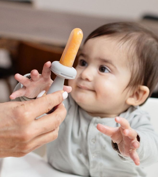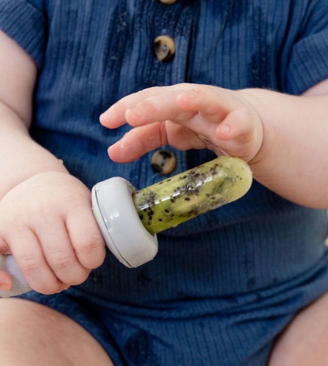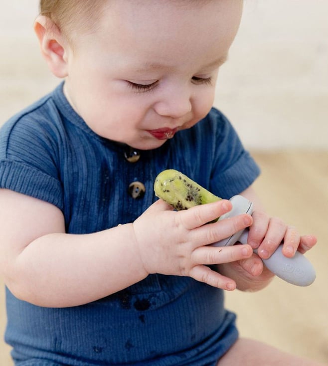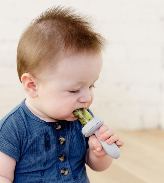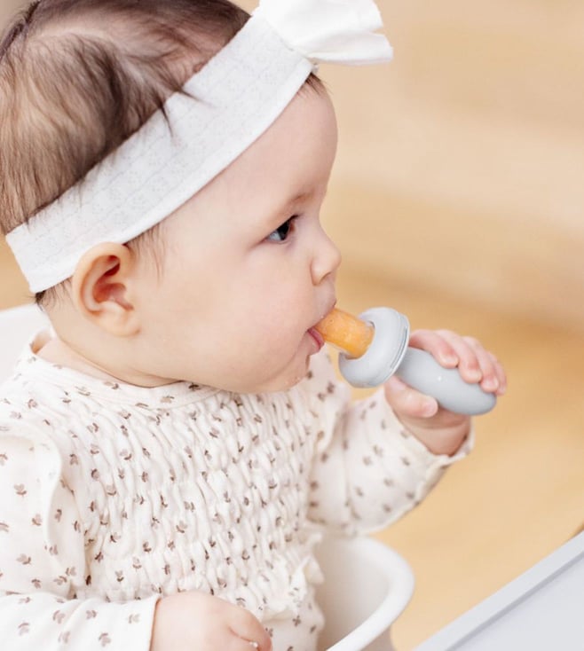 The ezpz gumline feeder is a soft, baby-safe silicone feeder designed to help little ones safely explore new foods while soothing their gums. Its micro-holes allow controlled tasting of purees, fruits, and soft foods, making mealtime safer and easier for beginners.