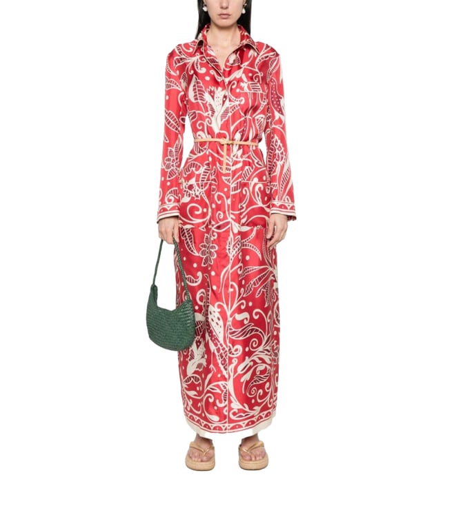 Red Printed Long Shirtdress Floral Dress