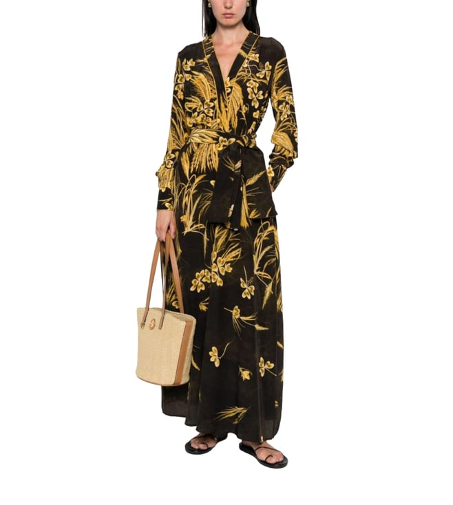 Brown Floral-Print Maxi Floral Dress