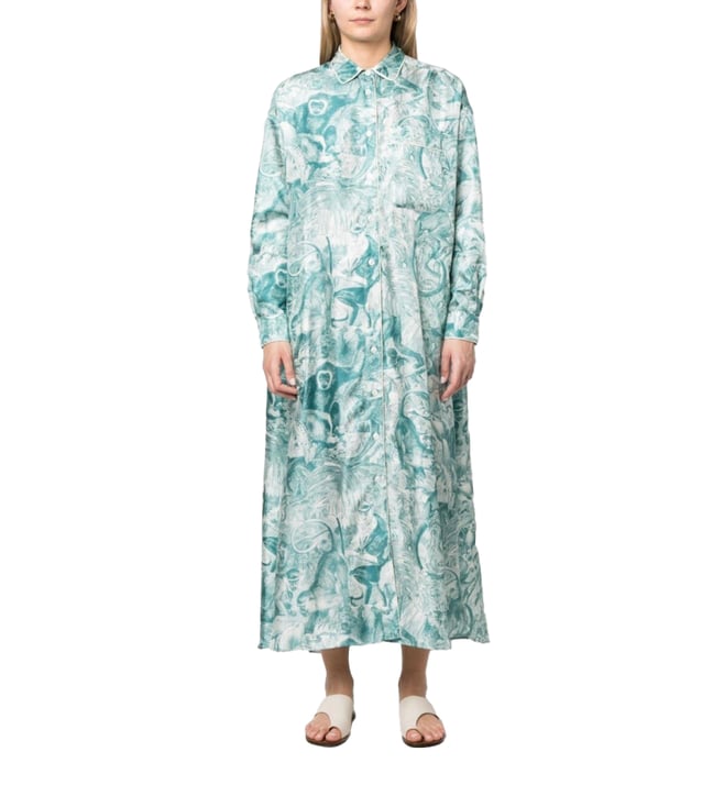 F.R.S. For Restless Sleepers Blue Forest Print Shirt Printed Dress
