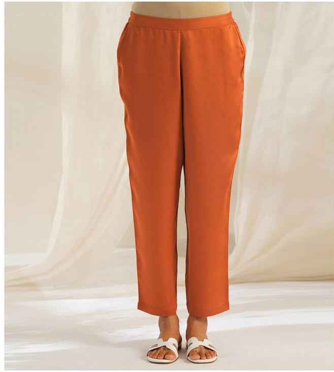 Rust Orange Modal Ankle Length Straight Fit Pants