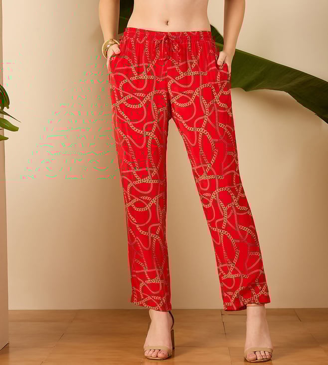 Red Viscose Regular Fit Pant