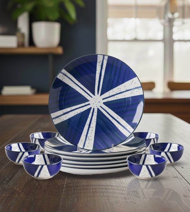Ceramic Blue & White Dinner Set - (Set Of 12)
