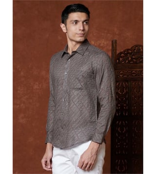Unveil your refined stylish quotient by wearing this grey slim fit shirt from Fabindia. Tailored to sartorial perfection from premium quality fabric, it assures a soft and soothing touch against the skin. The mandarin collar augments its design. Exuding full sleeves, it is sure to fetch you compliments from all. The printed pattern makes it a captivating choice.