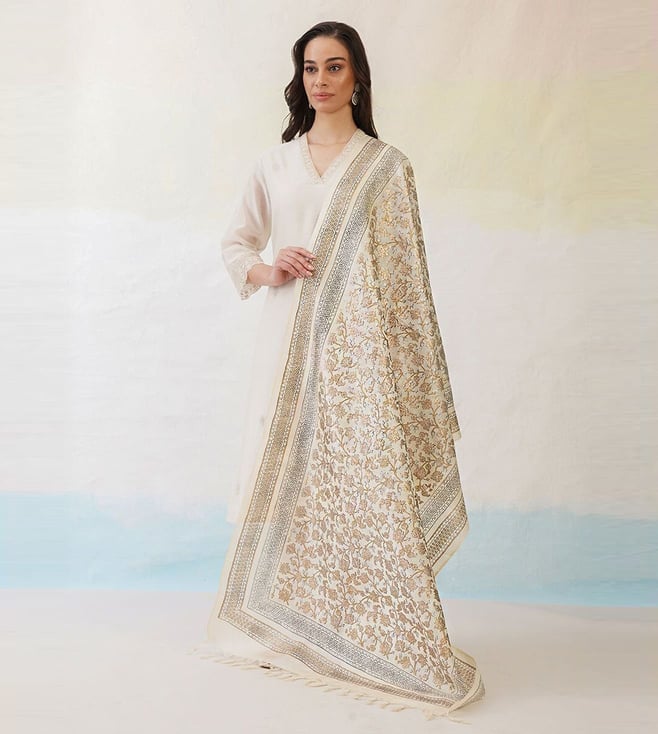 Ivory Ayat Zari Sequin Mirror Gorgette Tunic With Gharara And Dupatta