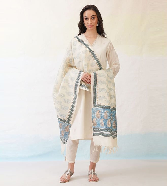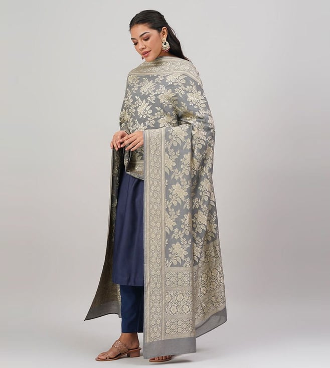 Navy Long Kurta with Bottom and Dupatta with Embroidered