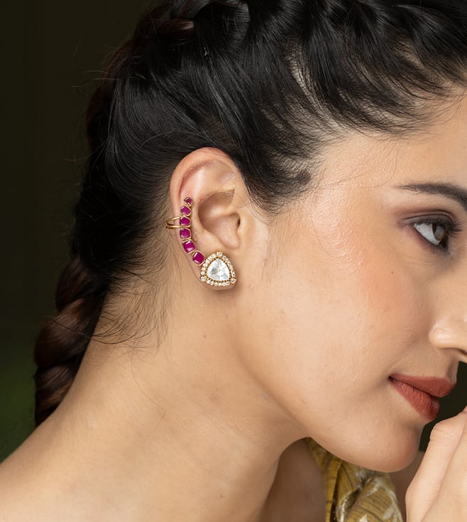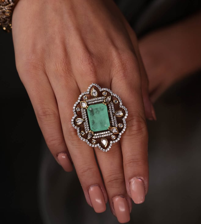 Golden, White & Green Royal Kundan Polki Chand Baali Earrings