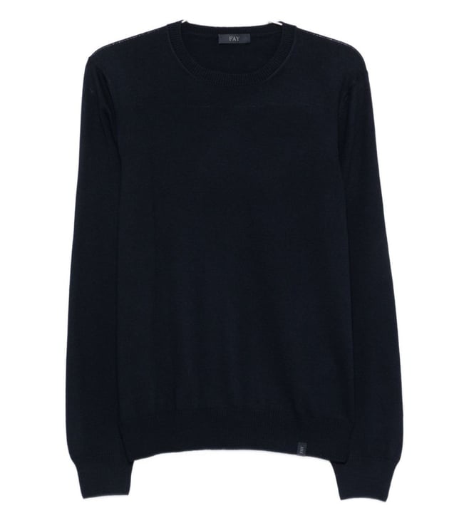 Elevate your style with the Fay Black Sweater. Round neck long sleeves ribbed cuffs and hem. Products purchased from Darveys are supported exclusively by the warranty/exchange policies of Darveys and its partner boutiques. Brand owners and their channel partners are not responsible for exchange/warranty services for items purchased through Darveys.