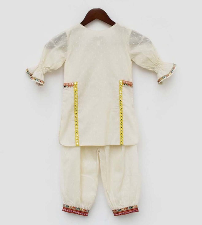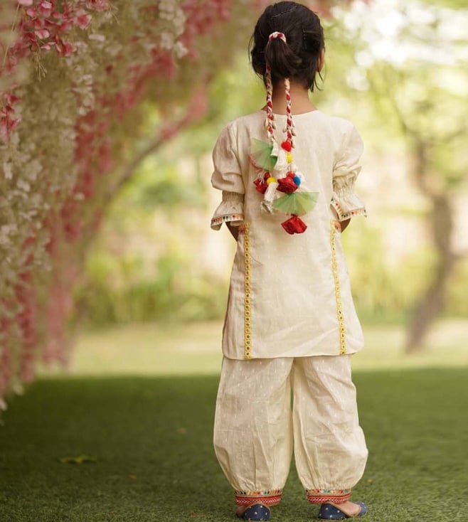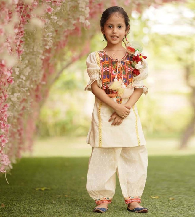 Make your little one step out in style wearing this kurti and salwar. Crafted with precision using cotton, it is smooth on the skin. Disclaimer: Product colour may slightly vary due to photographic lighting sources. Country Of Origin - India.