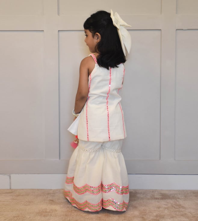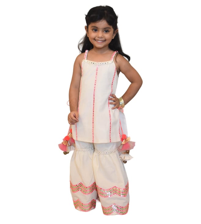 FAYON KIDS Off White Pret Embroidered Kurti With Sharara